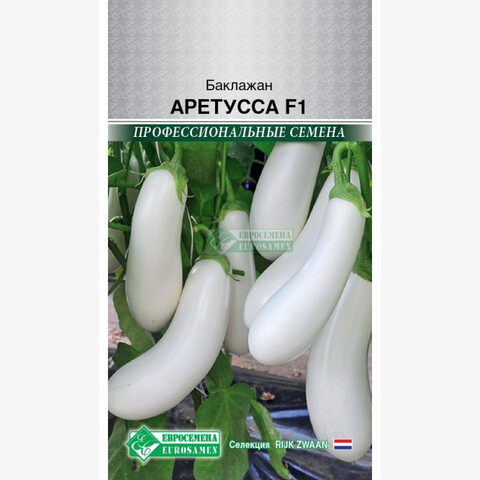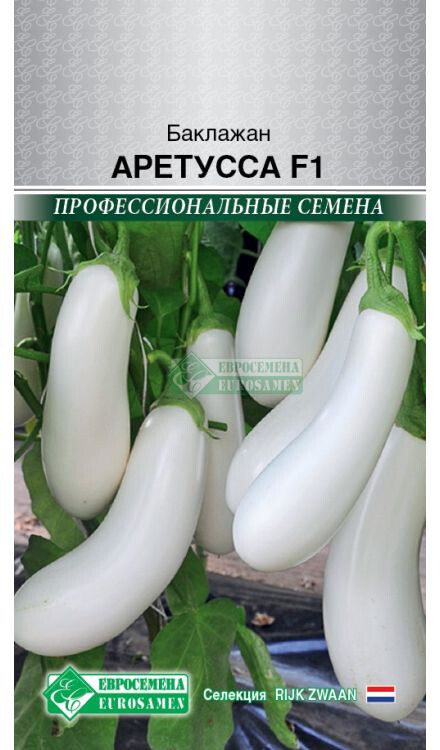 Баклажаны — излюбленный продукт многих хозяек. Они питательны, полезны, хороши для приготовления горячих блюд и маринования на зиму. Аретусса- новый среднеспелый гибрид белоплодного баклажана. Растение открытого типа с сильной корневой системой, укороченными междоузлиями и высокой урожайностью. Растение мощное, высотой до 90 см. Плоды овальные, белоснежные, гладкие с блестящей поверхностью, однородные по размеру, массой 300-400 г (диаметр 6,5 см, длина 16-18 см), с нежной, плотной мякотью приятного вкуса. Рекомендуется для выращивания в пленочных теплицах и в открытом грунте. Гибрид обладает высоким уровнем устойчивости к неблагоприятным условиям, отличается хорошей товарностью, длительным периодом хранения и умением завязывать плоды в не благоприятных условиях. Применяется в разнообразных кулинарных рецептах и в переработке (засолка, маринование и консервирование).