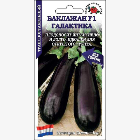 Среднеранний (105-115 дней) гибрид для открытого грунта. Характеризуется стабильным завязыванием и интенсивным наливом плодов и при прохладной погоде, и в жару, плодоносит длительно. Растение мощное, с прекрасным листовым покрытием, отличной регенерацией и быстрым восстановлением после атак вредителей. Плоды цилиндрические, длиной 16-18 см, массой 270-350 г, гладкие, блестящие, темно-фиолетовые, транспортабельные. Мякоть белая, плотная, прекрасного вкуса, без горечи.