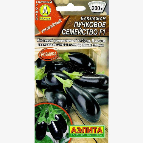 Новый раннеспелый гибрид. Принадлежит к группе высокопродуктивных, но пока еще редких баклажанов с кистевым плодоношением. Растения индетерминантные, высотой 120-150 см. Гибрид устойчив к погодным стрессам. Цветки не сбрасываются даже в самую экстремальную жару, завязываемость плодов отличная. Плодоношение обильное и долгое. Завязи формируются пучками по 3-4 шт. Плоды высокого качества, тонкокожие, малосемянные, средней массой 150-200 г. Белая нежная мякоть никогда не горчит. Урожайность 7-9 кг/м 2 .