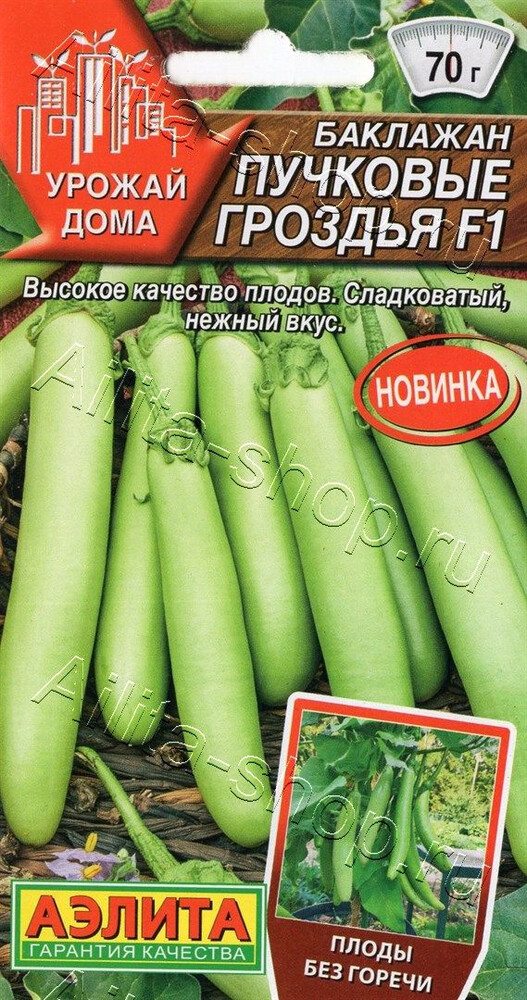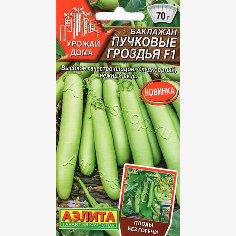 Новый пучковый гибрид для выращивания в горшках на подоконнике, балконе или лоджии. Баклажан такой формы называют «слоновий бивень». От всходов до технической спелости проходит 120-130 дней. Растения компактные, образуют более 5-6 завязей одновременно. Длина плодов* около 10-15 см, Ø 3-4 см. Мякоть плотная, без горечи, сладковатого, нежного вкуса. Гибрид отлично подходит для консервирования и замораживания. Ценится за высокое качество продукции. Урожайность и высота растений значительно отличаются при выращивании в открытом и защищенном грунте. * Форма плодов может меняться в зависимости от условий.