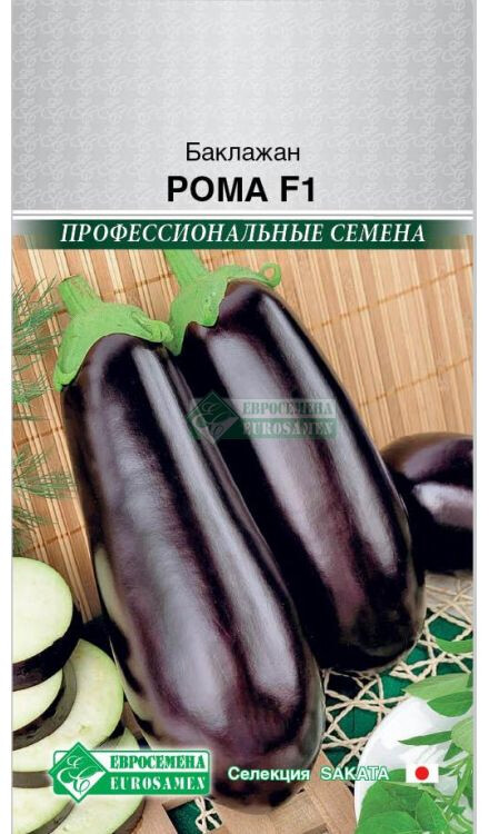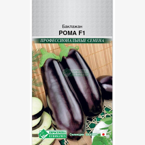 Solanum melongena L Баклажан давно входит в число полезных и любимых овощей и с успехом выращивается в разных регионах нашей страны – под пленкой или в открытом грунте. Среди множества сортов особой популярностью пользуется баклажан Рома F1, он быстро завоевал признание огородников высокой урожайностью, универсальностью применения и высокими товарными характеристиками. Высота кустов достигает 2 м, на них формируются удлиненные грушевидные плоды традиционного темно-фиолетового цвета. Сортовой гибрид отличается ранними сроками созревания ( 70-80 дней после посадки на постоянное место), светлой нежной мякотью и отсутствием горечи; гладкой, блестящей поверхностью; однородностью плодов, длительным периодом плодоношения – до начала заморозков; прекрасной лежкостью и устойчивостью к заболеваниям. Длина плодов сорта Рома F1, в среднем, составляет 20-25 см, а вес – в пределах 220-250 г; с 1 кв. м можно получить до 5 кг баклажанов