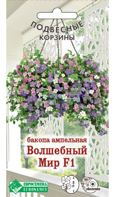 Бакопа (иначе – сутера) – прекраснейшее цветущее растение, которое поможет украсить не только лоджию, садовый участок и каменные стены, но и всю квартиру. Эти цветы стали культивировать в России не так давно – с 90-х годов двадцатого столетия, но за столь короткий промежуток времени они полюбились многим людям. Прибыло растение в наши края из Африки. Примечательно цветение сутеры, которое при должном уходе продолжается с марта месяца вплоть до конца октября. Это травянистое растение, ветви его могут вырасти до 0,7 метра в длину. Листочки небольшого размера, парные, окрашены в приятный зеленый цвет, где явно проглядывает оттенок оливы. Оно настолько красиво, что не зря полюбилось многими садоводами. Сами цветочки не имеют крупных размеров, но за счет дружного цветения растение выглядит очень эффектно. “Волшебный мир- фантастическая смесь сутеры, состоящая из цветков белых, розовых и синих окрасок, распускающихся почти одновременно, также одновременно отцветающих, на смену которым тут же приходят свежие бутоны.