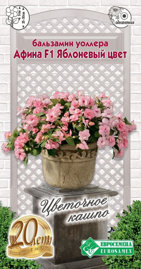 Бальзамины всех видов принадлежат к семейству Бальзаминовые, это одни из многих прекрасных клумбовых цветов, которые украшают собой любые цветники. Очень нарядно и декоративно смотрится вертикальная клумба с композицией из бальзаминов разных оттенков. Такая ширма, раскрашенная в разноцветную гамму, создаст уютную обстановку и украсит летний уголок отдыха в вашем саду. Существует множество сортов свисающих бальзаминов, закреплённые на стенах подвесные кашпо из них служат прекрасным украшением для пергол, с их помощью можно создавать красивые и необычные композиции. Афина Яблоневый цвет- сорт, идеально подходящий для выращивания в цветочных кашпо, подвесных корзинах, именно поэтому сделало его особенно популярным среди цветоводов. Куст очень плотно растет и позволяет добиться большого количества махровых цветков нежнейшей окраски.