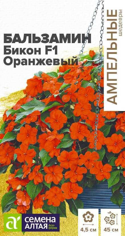 Идеально подойдет для затененных участков. Быстро наращивает побеги полуплетистого типа. Цветение раннее. Цветки крупные, оранжевой окраски, держатся на растении 5-7 дней, затем сменяются, создавая эффект непрерывного цветения. Гибрид устойчив к ложной мучнистой росе. Используется как ампельное растения для выращивания в вазонах, контейнерах, а также в качестве почвопокровного растения. Длина плети: 35-45 см Ширина растения: 30-35 см Диаметр цветка: 4-4,5 см Условия выращивания, место посадки: затененные места Требования к грунту: питательный легкий грунт (рекомендуется добавить вермикулит) с нейтральной кислотностью Способы выращивания: рассадный Время посева на рассаду: февраль-апрель Способ посева: семена высевают на уплотненное ложе замоченных торфяных таблеток или увлажненного грунта, не заделывая. Емкость накрывают прозрачной крышкой или пленкой до появления первых всходов, обеспечивают досветку 12-14 часов в сутки, посевы периодически проветривают. Оптимальная температура для прорастания +20…25°С. Оптимальная температура для молодых растений +18…22°С Время до появления всходов: 3-6 дней Перевалка: производится в стадии 2-4 настоящих листьев в рассадные емкости диаметром около 9 см, 4-5 неделя после появления всходов. Последующие перевалки осуществляются по мере роста корневой системы Время высадки в открытый грунт: май-июнь, когда минует угроза возвратных заморозков Посадочное расстояние: 20-25 см Период цветения: май-сентябрь Уход: необходим регулярный умеренный полив (не допускать переувлажнения), рыхление грунта проводят с осторожностью, чтобы не травмировать корневую систему. Первую подкормку проводят в начале бутонизации комплексным минеральным удобрением с небольшим содержанием азота, далее – 1 раз в 2 недели Внимание! Семена коатированные, оболочку не нужно разрушать механически, она растворяется при посеве от опрыскивания теплой водой.