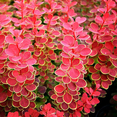Очень эффектный кустарник. Быстро растет, высота 150см.Ширина кустарника 80см. Листва ярко-оранжево-красные, позже появляется очень декоративное золотое обрамление.