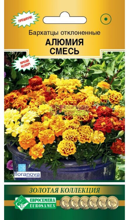 Бархатцы принадлежат к роду семейства Астровые или Сложноцветные, происходящему из Америки, где дико произрастают от Аризоны до Аргентины, они покорили не одно сердце садовода-любителя. Алюмия- чудесная серия бархатцев с крупными анемоновидными, отлично выровненными, цветками ярких окрасок, это эксклюзивный сорт, летник премиум - класса. Растение отлично ветвится, образуя большое количество цветоносов. Крупные внешние лепестки цветка, так называемые юбочки придают растению необыкновенный внешний вид. Сорт ультра ранний, зацветает в рассаде, стойко переносит непогоду, не разваливается от порывов ветра и сильных дождей. Прекрасно растет в балконных и садовых контейнерах. В открытом грунте растения хороши в бордюрах, массивами на рабатках, по переднему краю сборных цветников, станут отличным помощником в заполнении промежутков между соседними растениями.