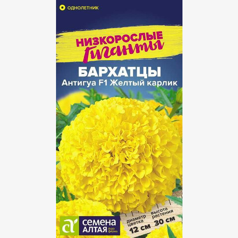 Нетребовательны к продолжительности светового дня. Кустики компактные, низкорослые, не вытягиваются даже в загущенных посадках. Цветки интенсивно-желтые, очень крупные, практически не повреждаются ветром и дождем. Цветение раннее и продолжительное. Гибрид подходт для выращивания в вазонах, контейнерах, кашпо и рабатках, в качестве бордюрной культуры. Долго сохраняет декоративность. Высота растения: 25-30 см Ширина растения: 20-25 см Диаметр соцветия: 8-12 см Условия выращивания, место посадки: солнечные участки, полутень Требования к грунту: питательный легкий грунт с нейтральной реакцией среды Способы выращивания: рассадный, безрассадный Время посева на рассаду: март-апрель Время посева в грунт: май Способ посева: семена высевают на уплотненное ложе замоченных торфяных таблеток или увлажненного грунта, заделывая на глубину 0,4-1 см. Увлажняют из опрыскивателя. Емкость накрывают прозрачной крышкой или пленкой до появления первых всходов, периодически проветривают. При раннем посеве на рассаду обеспечивают досветку 10-12 часов при температуре 20-22°С Время до появления всходов: 4-8 дней Перевалка: производится через 2-3 недели от появления всходов. Объем индивидуальных емкостей при доращивании не менее 0,5 л Время высадки в открытый грунт: май-июнь, когда минует угроза возвратных заморозков Посадочное расстояние: 20-25 см Период цветения: июнь-октябрь Уход: первую подкормку комплексным минеральным удобрением проводят через 5 дней после перевалки в отдельные емкости. Далее – 1 раз в 14-20 дней. Не допускается пересыхание субстрата Внимание! Семена коатированные, оболочку драже не разрушать, она растворяется при поливе!