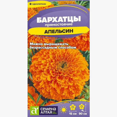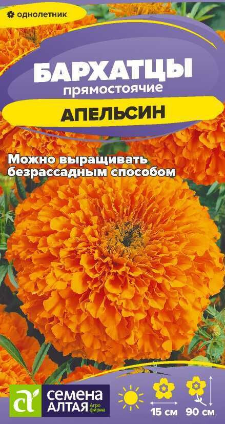 Высокорослый однолетник с очень крупными махровыми соцветиями. Образует мощный ветвистый куст высотой до 90 см, с множеством крепких цветоносов, увенчанных крупными гвоздиковидными соцветиями ярко-оранжевой окраски, диаметром до 15 см. Послужит великолепным украшением различного рода цветников, клумб, бордюров. Долго сохраняет декоративность в срезке (до 15 дней). Неприхотливое, засухоустойчивое и светолюбивое растение, выносит небольшое затенение. Заморозков не переносит. Наибольшей декоративности достигает на открытых солнечных участках с питательными нейтральными суглинистыми почвами. Посев семян на рассаду проводят в марте. Глубина заделки семян 0,5 см. Посевы накрывают плёнкой для поддержания необходимого уровня влажности. При температуре +20-22°С всходы появляются через 7-14 дней, затем пленку убирают, температуру понижают до +16-18°С, во избежание вытягивания рассады. Когда минует угроза возвратных заморозков проводят высадку в открытый грунт. Схема посадки 30х50 см. Цветение – через 2-2,5 месяца от посева, с июня до заморозков. В районах с мягким климатом возможен посев семян в открытый грунт в мае на глубину 1,0-1,5 см.