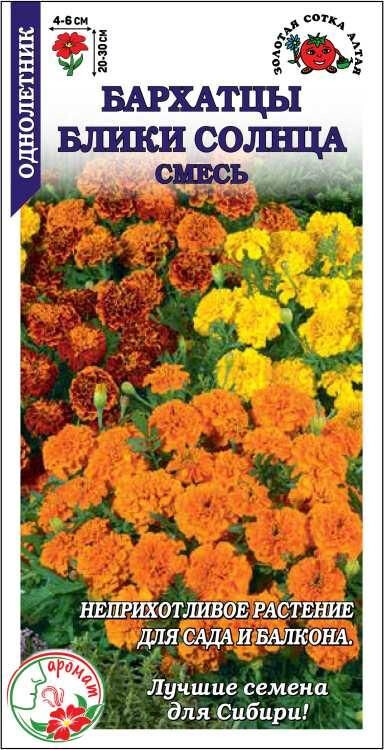 Очень нарядное неприхотливое растение, цветущее обильно и продолжительно, оказывающее санитарное воздействие на почву. Пышные компактные кустики сплошь покрыты махровыми соцветиями. Окраска разнообразная и яркая: желтая, оранжевая, красно-бордовая, с контрастной серединкой или ободком. Бархатцы используются во всех типах цветников, для оформления контейнеров в саду и на балконе.