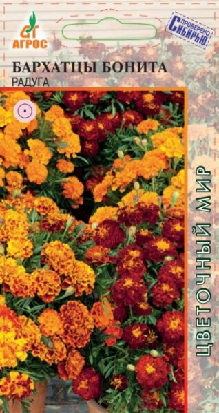 Однолетняя смесь оранжевых, желтых и лимонных окрасок. Диаметр соцветий 5-7 см. Бархатцы неприхотливые, быстрорастущие, засухоустойчивые и светолюбивые растения, но выносят небольшое затенение, поэтому ими можно оформлять участки с северной стороны строений. Семена на рассаду высевают в начале апреля, но для более раннего цветения их можно посеять в марте. В открытый грунт можно посеять в мае. В грунт высаживают, когда минует угроза заморозков. Всходы появляются через 10-14 дней. Бархатцы гармонично выглядят в любых цветниках. Их можно использовать в контейнерах и корзинах, высаживать в балконные ящики. Кроме того, бархатцы оказывают санитарное воздействие на почву. Хорошо и долго стоят в срезке. 25-30 III-IV V V-VI 20x20 VI-IX