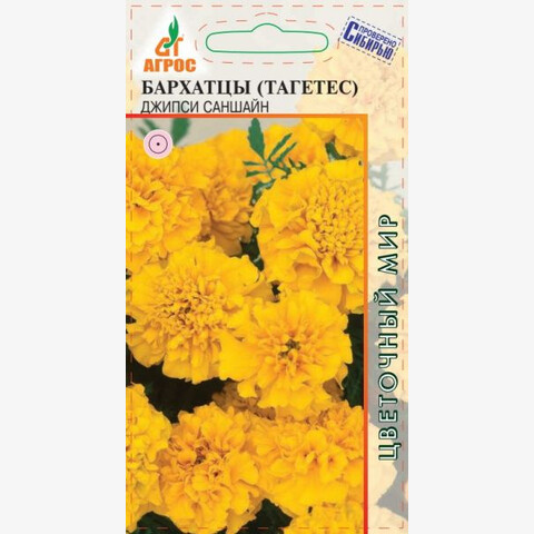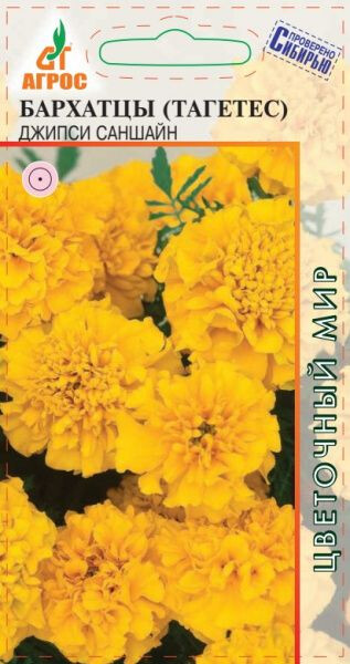 Однолетник. Роскошные соцветия диаметром 4-5 см, насыщенно-желтого цвета. Куст компактный устойчивый, высотой 25-30 см, густооблиственный. Растения выровнены по высоте и срокам цветения. Бархатцы неприхотливые, быстрорастущие, засухоустойчивые и светолюбивые, но выносят небольшое затенение. Поэтому ими можно оформлять участки с северной стороны строений. Семена на рассаду высевают в начале апреля, но для более раннего цветения их можно посеять на рассаду в марте. Всходы появляются через 10-14 дней при температуре 16-18 °С. В период выращивания рассады желательно сделать 2-3 подкормки комплексными минеральными удобрениями. В грунт высаживают, когда минует угроза заморозков. Бархатцы гармонично смотрятся в любых цветниках. Их можно использовать в контейнерах и корзинах, высаживать в балконные ящики. Кроме того, бархатцы оказывают санитарное воздействие на почву. Хорошо и долго стоят в срезке. 25 III-IV V V-VI 20x20 VI-IX