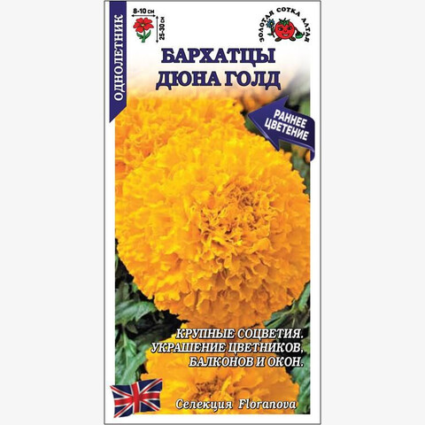 Уникальная раннецветущая серия Британской селекции. Растения устойчивы к неблагоприятным факторам, прекрасно держат форму и до самых заморозков сохраняют декоративный вид. Соцветия насыщенной желтой окраски, приплюснутые, густомахровые, плотные, с гофрированными краями. Низкорослые бархатцы используют в ландшафтном озеленении и высаживают в различные контейнеры.
