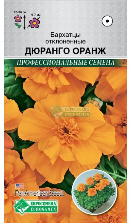 Бархатцы отклоненные (или французские) занимают лидирующие позиции по популярности среди садоводов. Они культивируются по всему миру, используются в декоративном садоводстве, кулинарии, косметической промышленности и медицине. Их популярность обусловлена красотой соцветий, неприхотливостью и простотой выращивания, это наиболее часто встречающийся летник на дачных участках и в ландшафтных композициях. Дюранго- серия анемоновидных бархатцев с ранним обильным цветением, крепкими цветоносами, крупными цветками с сочной, насыщенной окраской и прекрасным ветвлением боковых побегов. Растения образуют компактные кустики, выровненные по высоте и времени цветения, хорошо переносят пересадку в цветущем состоянии, имеют высокую устойчивость к непогодным условиям. Прекрасно смотрятся в бордюрах, цветниках и рабатках, хорошо сочетаются с флоксами, георгинами, астрами, геранью, могут являться основой любого цветника или клумбы.