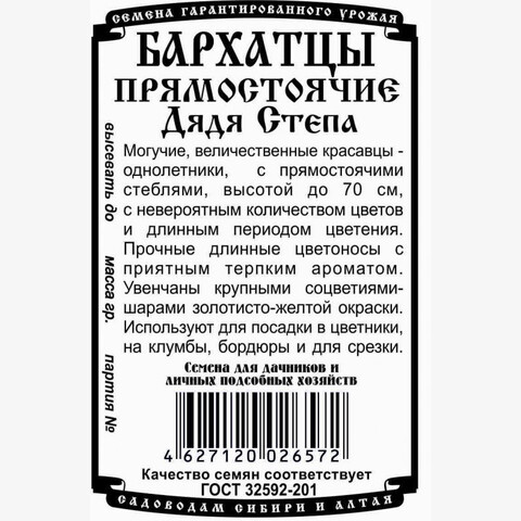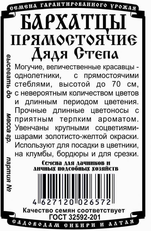 Могучие, величественные красавцы - однолетники, с прямостоячими стеблями, высотой до 70 см, с невероятным количеством цветов и длинным периодом цветения. Прочные длинные цветоносы увенчаны крупными соцветиями-шарами золотисто-желтой окраски, с приятным терпким ароматом. Используют для посадки в цветники, на клумбы, бордюры и для срезки.