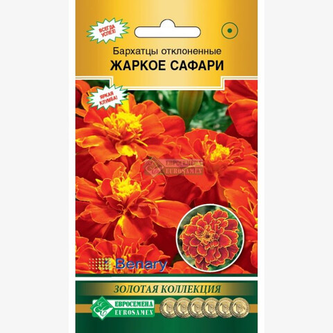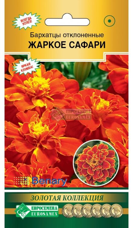Для украшения приусадебного участка, а также создания ландшафтного дизайна, цветущие культуры всегда были особо востребованы. К популярным представителям таких растений следует отнести бархатцы отклоненные, особенности которых позволяют создавать с их помощью красивые клумбы и цветочные композиции в открытом грунте. Они принадлежат к роду семейства Астровые или Сложноцветные, происходящему из Америки, где дико произрастают от Аризоны до Аргентины, они покорили не одно сердце садовода-любителя. Cафари- чудесная серия отлично выровненных бархатцев с махровыми цветками красно-алой окраски. Компактные кустики в период цветения сплошь покрываются цветами с очень приятным и нежным ароматом, словно огненные шарики. Благодаря своей неприхотливости, замечательно растут в вазонах, контейнерах, балконных ящиках, бордюрах и прекрасно держат форму, не разваливаясь от дождя и ветра, переносят понижение температуры без ущерба для красоты своих соцветий.