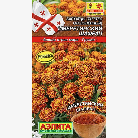 Бархатцы – это не только красивый цветок, но и изысканная пряность. При высушивании этих неприхотливых цветков можно получить прекрасную приправу – имеретинский шафран. Эта пряность придаст пикантный вкус рыбным и мясным блюдам, супам, а также маринадам и соленьям. Особенно хорошо сочетается с грецким орехом. Имеретинский шафран отлично переносит тепловую обработку: при предварительном замачивании в кипятке лучше раскрывает свой вкус и аромат. Из-за красящих пигментов используется как пищевой краситель.