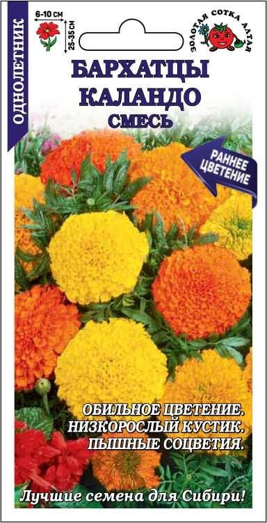 Бархатцы серии Каландо отличаютсяранним и обильным цветением, компактной формой куста и огромными цветами. Растения ветвистые, высотой около 30 см и шириной около 40 см. Пышные соцветия различных оттенков желтого и оранжевого добавят солнечные блики в Ваш сад и привлекут множество бабочек. Бархатцы отлично растут в контейнерах, способны отпугивать вредителей и обеззараживать почву.