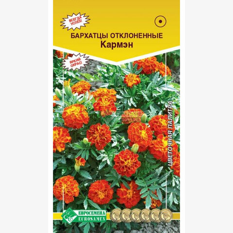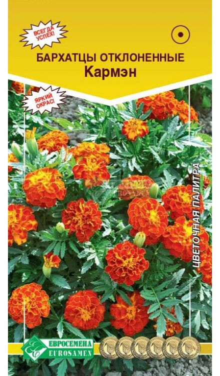 Для украшения приусадебного участка, а также создания ландшафтного дизайна, цветущие культуры всегда были особо востребованы. К популярным представителям таких растений следует отнести бархатцы отклоненные, особенности которых позволяют создавать с их помощью красивые клумбы и цветочные композиции в открытом грунте. Кармэн- подлинный шедевр и яркая представительница огромного отряда бархатцев отклоненных с невероятно эффектной внешностью. Восхитительные, ароматные и прекрасные цветки этих бархатцев лучатся красными огоньками на фоне сочной зелени, и на протяжении всего лета будут солировать на Ваших клумбах, радовать Вас своим обильным, продолжительным цветением и, конечно же, благодарить Вас за Ваш выбор.