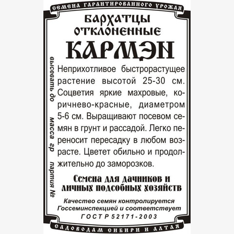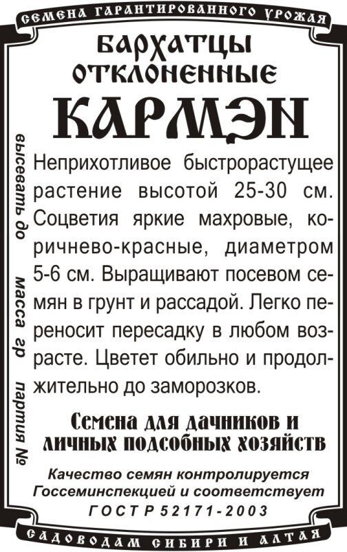 Эффектный, компактный однолетник высотой до30 см. Соцветия диаметром 4-5 см, махровые, гвоздиковидные, коричнево-красные с желтым центром. Цветет с июня по сентябрь. Используют для клумб, рабаток, бордюров. Выращивают посевом семян в грунт и рассадой. Легко переносит пересадку в любом возрасте.