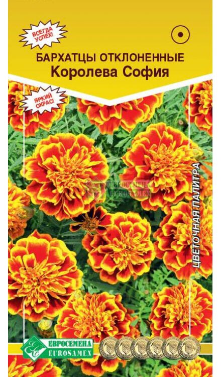 Для украшения приусадебного участка, а также создания ландшафтного дизайна, цветущие культуры всегда были особо востребованы. К популярным представителям таких растений следует отнести бархатцы отклоненные, особенности которых позволяют создавать с их помощью красивые клумбы и цветочные композиции в открытом грунте. Королева София- восхитительное украшение цветников! Компактные кустики в период цветения сплошь покрываются яркими цветами с очень приятным и нежным ароматом. Благодаря своей неприхотливости, замечательно растут в вазонах, контейнерах, балконных ящиках, бордюрах и прекрасно держат форму, не разваливаясь от дождя и ветра, переносят понижение температуры без ущерба для красоты своих соцветий. Они будут радовать Вас своим цветением до заморозков.