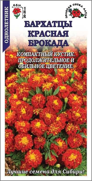 Компактные низкорослые кустики покрыты густомахровыми шаровидными соцветиями огненно-красной окраски с желтой махровой серединкой. Сорт отличается обильным и длительным цветением и, как и все бархатцы, оказывает санитарное воздействие на почву. Идеально подходит для оформления бордюров и клумб, посадки в вазоны и балконные ящики.