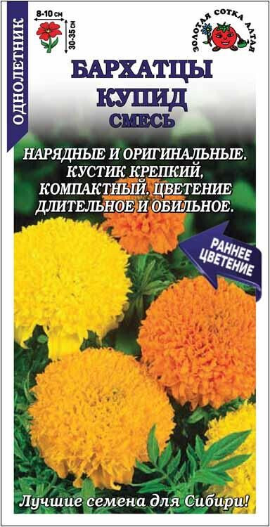 Смесь нарядных сортов с огромным количеством крупных цветов. Цветет обильно и длительно. Кустик крепкий, компактный, ветвистый. Соцветия золотисто-желтого, лимонного и ярко-оранжевого цвета, оригинальной формы: густомахровый выпуклый хохолок в обрамлении волнистой юбочки. Используют в цветниках, для оформления контейнеров в саду и на балконе, а также на срезку в букеты. Прекрасное растение-защитник.