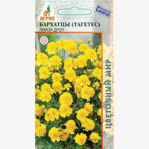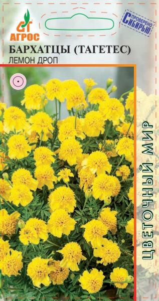 Однолетник. Соцветия оригинальной формы махровые, лимонного цвета, в диаметре 4-6 см. Куст компактный устойчивый, обильноцветущий, высотой 20-25 см, густооблиственный. Растения выровнены по высоте и срокам цветения. Бархатцы неприхотливые, быстрорастущие, засухоустойчивые и светолюбивые, но выносят небольшое затенение. Поэтому ими можно оформлять участки с северной стороны строений. Семена на рассаду высевают в начале апреля, но для более раннего цветения их можно посеять на рассаду в марте. Всходы появляются через 10-14 дней при температуре 16-18 °С. В период выращивания рассады желательно сделать 2-3 подкормки комплексными минеральными удобрениями. В грунт высаживают, когда минует угроза заморозков. Бархатцы гармонично смотрятся в любых цветниках. Их можно использовать в контейнерах и корзинах, высаживать в балконные ящики. Кроме того, бархатцы оказывают санитарное воздействие на почву. Хорошо и долго стоят в срезке. 20 III-IV V V-VI 20x20 VI-IX