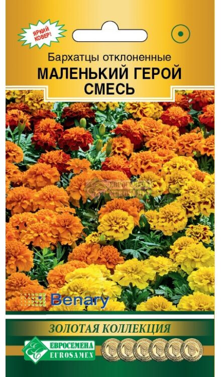 Для украшения приусадебного участка, а также создания ландшафтного дизайна, цветущие культуры всегда были особо востребованы. К популярным представителям таких растений следует отнести бархатцы отклоненные, особенности которых позволяют создавать с их помощью красивые клумбы и цветочные композиции в открытом грунте. Они принадлежат к роду семейства Астровые или Сложноцветные, происходящему из Америки, где дико произрастают от Аризоны до Аргентины, они покорили не одно сердце садовода-любителя. Маленький Герой- чудесная серия отлично выровненных бархатцев с махровыми цветками ярких окрасок. Компактные кустики в период цветения сплошь покрываются яркими цветами с очень приятным и нежным ароматом. Благодаря своей неприхотливости, замечательно растут в вазонах, контейнерах, балконных ящиках, бордюрах и прекрасно держат форму, не разваливаясь от дождя и ветра, переносят понижение температуры без ущерба для красоты своих соцветий.