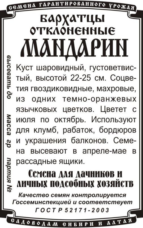 • Культура: Бархатцы отклоненные ярко-оранжевые