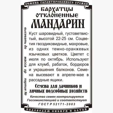 Бархатцы Мандарин 0.3г БП/ Деметра