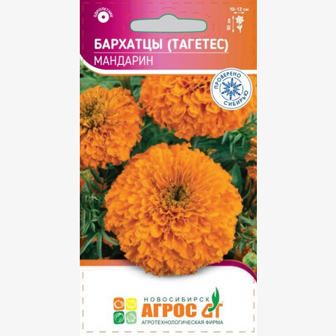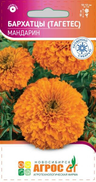 Однолетник. Высокорослый сорт с крупными махровыми соцветиями, диаметром 10-12 см ярко-оранжевого цвета. Бархатцы – неприхотливые, быстрорастущие, засухоустойчивые и светолюбивые растения, но выносят небольшое затенение, поэтому ими можно оформлять участки с северной стороны строений. Зацветают через 2-2,5 месяца после посева, и цветение длится до сильных заморозков. Семена на рассаду высевают в начале апреля или в мае в открытый грунт. При температуре 16- 18 °С всходы появляются через 10-14 дней. В грунт высаживают, когда минует угроза заморозков. Бархатцы гармонично выглядят в любых цветниках. Их можно использовать для клумб, рабаток, высоких групп и срезки. Кроме того, бархатцы оказывают санитарное воздействие на почву. Хорошо и долго стоят в срезке. Соцветия бархатцев можно высушивать и использовать для зимних композиций с сухоцветами. 90 III-IV V V-VI 35x40 VI-IX