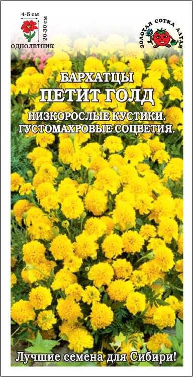 Бархатцы – это не только красивый цветок, но и изысканная пряность, и растение-защитник. Кустик низкорослый, раскидистый, хорошо ветвится от основания и сохраняет декоративность до заморозков. Соцветия яркой золотисто-желтой окраски, густомахровые, хризантемовидной формы с хохлатым центром. Используют для оформления различных цветников, с успехом выращивают в контейнерах.