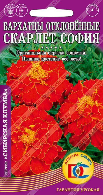Компактные обильно цветущие однолетники с крупными алыми соцветиями великолепно украсят любую цветочную композицию. Кустики высотой 20-30см, покрывается яркими темно-красными цветками, собранными в махровые гвоздиковидные соцветия до 8см в диаметре. Язычковые цветки широкие, ярко-красные, иногда с тонкой желтой окантовкой по краю, трубчатые – мелкие оранжево-желтые. Продолжительное, обильное цветение с июня до заморозков. Отлично сочетаются в цветниках с соседними растениями, а также украшают террасы, балконы и вазоны, хороши для создания бордюров. Уменьшают поражение грибковыми заболеваниями, особенно фузариозом, защищают от некоторых видов нематод.