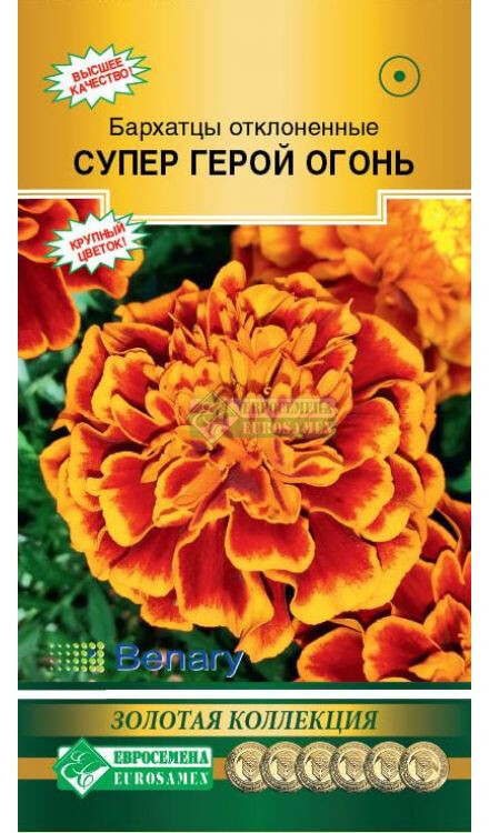Бархатцы заслуженно считаются одними из самых универсальных летников. Это и ландшафтная классика, и современная разновидность садовой флоры, обладающая внушительным набором достойных свойств. В настоящее время трудно себе представить, чтобы на садовом участке или даче не выращивались бы эти цветы, ведь они дарят людям свою красоту и поднимают настроение яркими красками на протяжении всего лета. Селекционеры просто неутомимы в создании все более новых и прекрасных сортов и гибридов этой однолетней культуры. Супер Герой Огонь- улучшенный сорт известной серии бархатцев Hero от немецкой компании Benary, появился на рынке семян пару лет назад, отличается эффектной внешностью соцветий, выравненностью растений, более крупным цветком и более ранним цветением. Восхитительные цветки лучатся, словно огоньки, яркой окраской на фоне сочной зелени, прекрасно заполняя промежутки между соседними растениями.