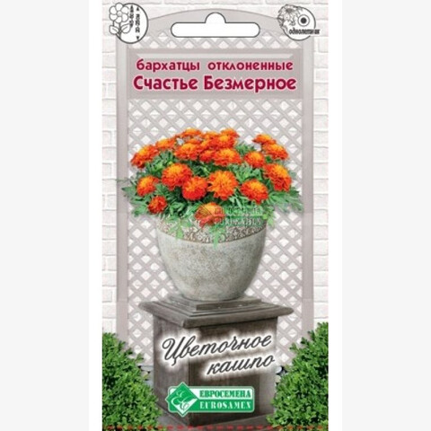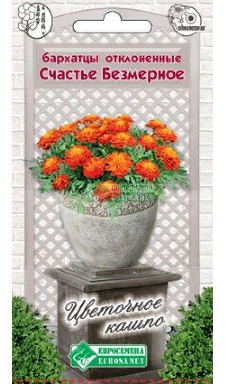 Для украшения приусадебного участка, а также создания ландшафтного дизайна, цветущие культуры всегда были особо востребованы. К популярным представителям таких растений следует отнести бархатцы отклоненные, особенности которых позволяют создавать с их помощью красивые клумбы и цветочные композиции в открытом грунте. Они принадлежат к роду семейства Астровые или Сложноцветные, происходящему из Америки, где дико произрастают от Аризоны до Аргентины, они покорили не одно сердце садовода-любителя. Бархатцы Счастье безмерное- идеальное растение для всех видов озеленения: клумб, рабаток, групповых посадок, но особенно хороши они в посадках в вазоны, контейнеры или кашпо, они прекрасно держат форму, не разваливаются от ветра и дождя, стойко переносят понижение температуры без ущерба для красоты своих соцветий. Отличаются обильным и продолжительным цветением, выравненностью растений, что позволяет с успехом комбинировать их в различных композициях.