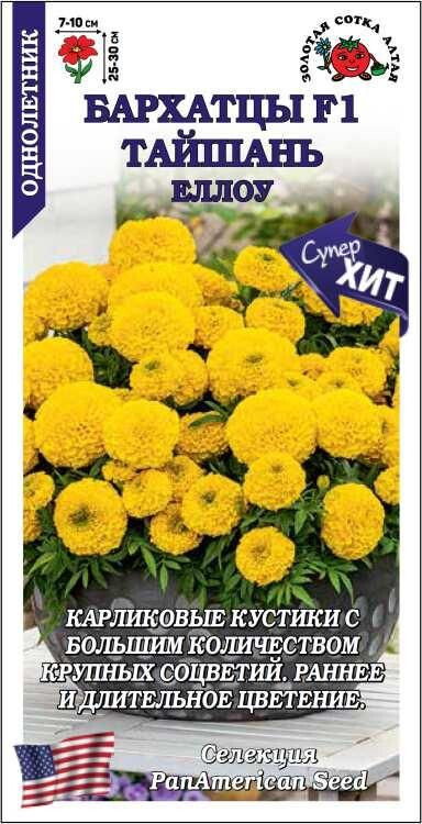 Бархатцы Тайшань устойчивы к неблагоприятным факторам, зацветают рано и цветут продолжительно. Кустики компактные, карликовые, крепкие побеги хорошо ветвятся, не вытягиваются и не ломаются от сильного ветра и дождя. Соцветия густомахровые, крупные, не выгорающей лимонно-желтой окраски. Используют в ландшафтном озеленении и для посадки в различные контейнеры.