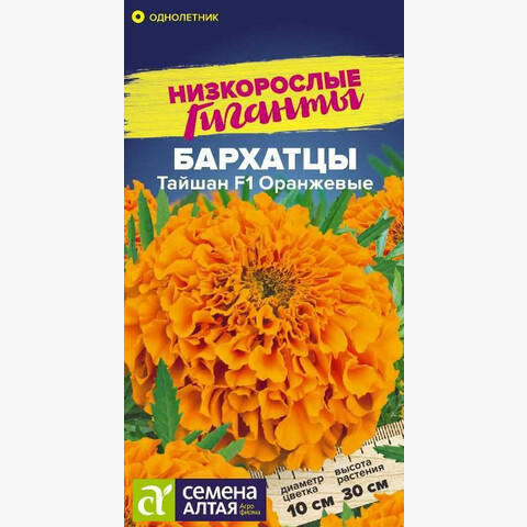 Бархатцы Тайшан Оранжевые/ Семена Алтая 5 шт. Низкорослые гиганты