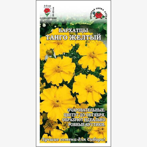 Очаровательный представитель неизменно популярных бархатцев. Растения компактные, разрастаются равномерно. Простые ярко-желтые соцветия, распускаясь в огромном количестве, практически полностью скрывают под собой аккуратный кустик. Сорт прекрасно подходит для создания идеально ровных бордюров и рабаток, хорошо вписывается в смешанные цветники, отлично развивается в контейнерах. Цветет до октября.