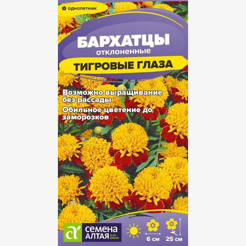 Декоративный однолетник высотой до 25 см, отличающийся необычной окраской и строением соцветий. Соцветия-корзинки хризантемовидные махровые, диаметром до 6 см, состоящие из одного ряда краевых язычковых, отогнутых книзу темно-бордовых с жёлтой каймой цветков, и многочисленных воронковидных ярко-оранжевых цветков, заполняющих центр соцветия. Этот быстрорастущий сорт прекрасно подходит для украшения парадных цветников, клумб, балконов, также его выращивают среди посадок огородных растений для отпугивания вредителей. Неприхотливое, засухоустойчивое и светолюбивое растение, выносит небольшое затенение. Заморозков не переносит. Наибольшей декоративности достигает на открытых солнечных участках с питательными нейтральными суглинистыми почвами. Посев семян на рассаду проводят в марте. Глубина заделки семян 0,5 см. Посевы накрывают черной плёнкой для поддержания необходимого уровня влажности. При температуре +20-22°С всходы появляются через 7-10 дней, пленку убирают, температуру понижают до +16-18°С, во избежание вытягивания рассады. В грунт высаживают, когда минует угроза заморозков. Схема посадки 20х30 см. Цветение – через 2-2,5 месяца от посева, с июня до заморозков. В районах с мягким климатом возможен посев семян в открытый грунт в мае на глубину 1,0-1,5 см.