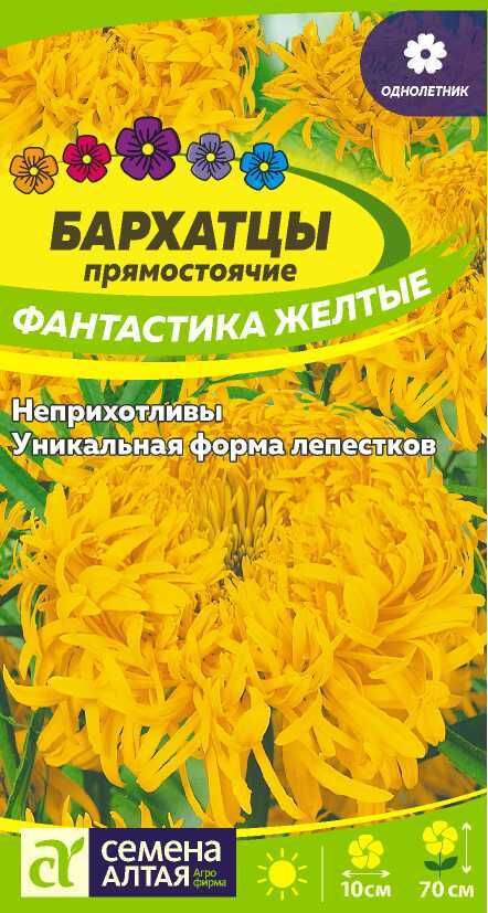 Великолепный сорт высокорослых бархатцев, выделяющийся крупными, исключительными по своей красоте и оригинальности, соцветиями. Растение формирует прямостоячий куст высотой до 70 см, который устойчив к непогоде и полеганию. Соцветия крупные ярко-желтые, махровые. Сорт особенно рекомендуется для создания высоких бордюров, рабаток и срезки. Неприхотливое, засухоустойчивое и светолюбивое растение, выносит небольшое затенение. Заморозков не переносит. Наибольшей декоративности достигает на открытых солнечных участках с питательными нейтральными суглинистыми почвами. Посев семян на рассаду проводят в марте. Глубина заделки семян 0,5 см. Посевы накрывают плёнкой для поддержания необходимого уровня влажности. При температуре +20-22°С всходы появляются через 7-14 дней, затем пленку убирают, температуру понижают до +16-18°С, во избежание вытягивания рассады. Когда минует угроза возвратных заморозков проводят высадку в открытый грунт. Схема посадки 30х50 см. Цветение – через 2-2,5 месяца от посева, с июня до заморозков. В районах с мягким климатом возможен посев семян в открытый грунт в мае на глубину 1,0-1,5 см.