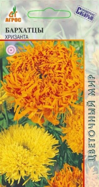 Однолетник. Серия ХРИЗАНТА - очень необычный сорт. Крупные махровые соцветия насыщенной оражевой и жёлтой окраски очень похожи на хризантемы. Бархатцы неприхотливые, быстрорастущие, засухоустойчивые и светолюбивые растения, но выносят небольшое затенение, поэтому ими можно оформлять участки с северной стороны строений. Семена на рассаду высевают в начале апреля, но для более раннего цветения их можно посеять в марте. Всходы появляются через 10-14 дней при температуре 16-18°С. В период выращивания рассады желательно сделать 2-3 подкормки комплексными минеральными удобрениями. В грунт высаживают, когда минует угроза заморозков. Бархатцы гармонично выглядят в любых цветниках. Их можно использовать в контейнерах и корзинах, высаживать в балконные ящики. Хорошо и долго стоят в срезке. Кроме того, бархатцы оказывают санитарное воздействие на почву. 35 III-IV - V-VI 30x30 VI-IX