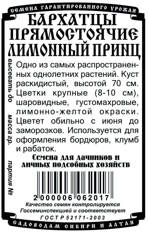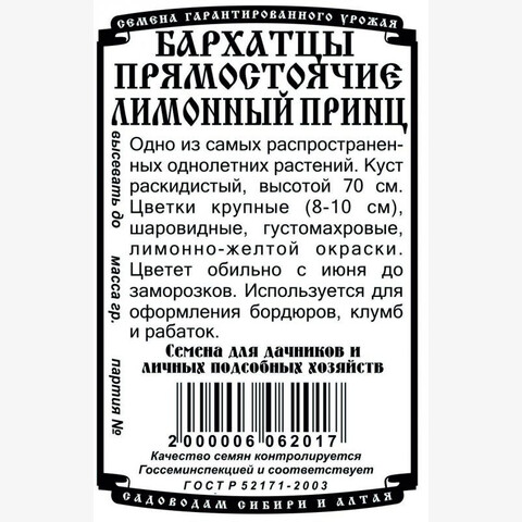 Бархатцы Цитронен /Лимонный принц прямост. махр. 0,2 гр Б/П/ Деметра