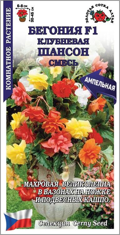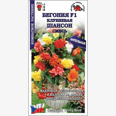 Великолепная ампельная бегония с махровыми и полумахровыми цветками ярких оттенков. Длинные свисающие побеги, окутанные облаком камелиевидных соцветий, образуют пышный цветочный каскад. Ампельная бегония особенно хороша на возвышенных местах, в вазонах и подвесных горшках – везде, где подчеркивается свисающая форма растений. Цветет обильно и длительно.