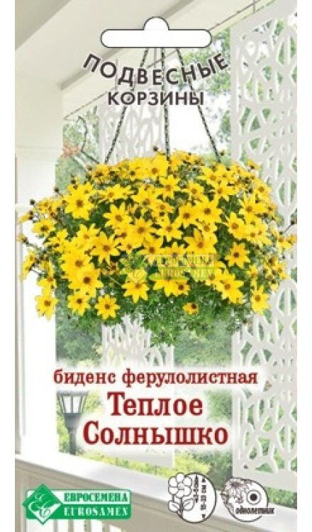 Биденс – растение, широко известное как череда или Золотой Шар, Золотой Дождь из семейства Астровых. В природе обитает в центрально- американских странах, но успешно выращивается в областях умеренного климата в качестве садового однолетника. Латинское название растения переводится как двузубчатый и связано с формой его семян. Простота выращивания является их самым большим преимуществом, а множество применений удовлетворит даже самых требовательных садоводов. Биденс - одно из самых востребованных растений для подвесных кашпо, балконных ящиков и напольных контейнеров. И это неудивительно, поскольку оно обладает всеми достоинствами идеального цветка для украшения балконов, веранд и террас, не боится ветров и сильных ливней и цветет все лето до глубокой осени. Годится и для цветников, и для горок, и для вазонов, невероятно обогащает контейнерные композиции из нескольких видов растений, где растение показывает себя во всей красе, скрывая емкость полностью под ниспадающими стеблями с мелкими листочками и обильными ярко-желтыми корзинками-цветочками.
