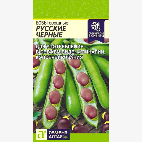 Среднеранний (72-80 дней) сорт. Растение ветвистое, высотой 50-60 см. Бобы длиной 7-8 см, 2-3 семянные, без пергаментного слоя, зеленые в съемной спелости, с мясистыми створками. При созревании зерна становятся темно-фиолетовыми. В пищу употребляют зрелые и зеленые плоды, которые богаты белками, микроэлементами. Пригодны для консервирования. Кроме пищевого направления бобы можно использовать как зеленые удобрения на сидераты, для обогащения почвы азотом. Место посадки: предпочитает плодородные очень легкие и легкие почвы с нейтральной или слабокислой реакцией. Требовательны к влаге. Бобы накапливают в почве азот, поэтому их можно располагать на истощенных почвах, после картофеля, моркови, лука, томатов Освещение: предпочитает солнечные участки, выносит затенение Предпосевная подготовка: не требуется, возможно замачивание на сутки Сроки посева: при прогревании почвы на глубине 10-15 см до +10..12°С (апрель-июнь) Посев на рассаду: не предусмотрено Посев в грунт: семена располагают в бороздки глубиной 4-6 см (чем крупнее семена, тем глубже), присыпают грунтом, хорошо уплотняют и проводят обильный полив теплой водой. В засушливый период посевы накрывают укрывным материалом для сохранения влаги. Расстояние между растениями не менее 15 см, между рядками 45 см Пикировка/перевалка: не требуется, сеют сразу в грунт Уход: полив регулярный, обильный. Обязательно бороться с сорняками, особенно вьющимися. Для высокорослых сортов рекомендуется создавать опору