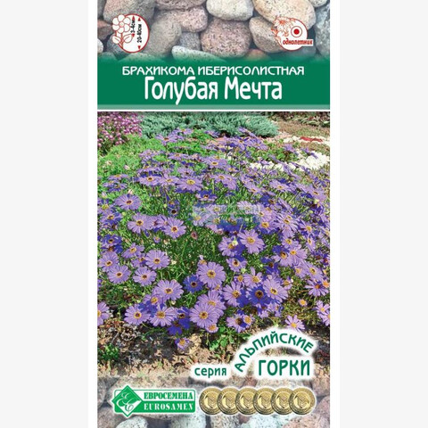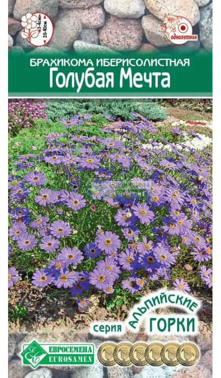 В дикой природе брахикома иберисолистная встречается только в Австралии, откуда и пришла к нам. Другое ее название Африканская Ромашка. Это обильно цветущее растение семейства Сложноцветные. Наиболее популярный и востребованный среди цветоводов – цвет индиго. Брахикома Голубая Мечта подарит россыпи цветков оттенков синего цвета, никогда не останется незамеченной в садах. Ее просто нельзя не заметить, ведь среди привычных декоративных культур, подобный колер встречается не так часто. Африканская Ромашка может стать удачным украшением любого цветника, она уместна в бордюрах, миксбордерах, в альпинарии, с ее помощью легко покрыть большие участки земли яркими ромашками. В настоящее время она популярна в качестве ампельного контейнерного растения, поэтому с успехом используется для выращивания в садовых вазах, на террасах и балконах, из нее можно создать нежные, небольшие букетики, поскольку они хорошо стоят в вазе. Отличный медонос.