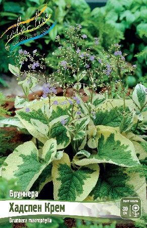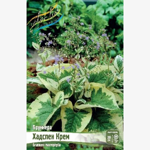 • лист с кремовой каймой, зелёный, цветки синие, Н-30см