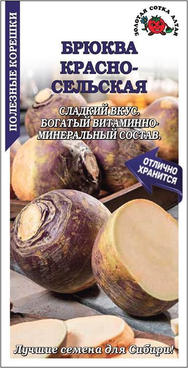 Сорт среднеспелый (90-117 дней), отлично хранится, устойчив к стеблеванию и болезням. Корнеплоды плоскоокруглые, массой 350-650 г, в подземной части желтые, головка серо-зеленая с антоцианом. Мякоть желтая, твердая, сладкая. Брюква богата каротиноидами, витаминами и минералами. Используется в свежем, тушёном, печёном и варёном видах.