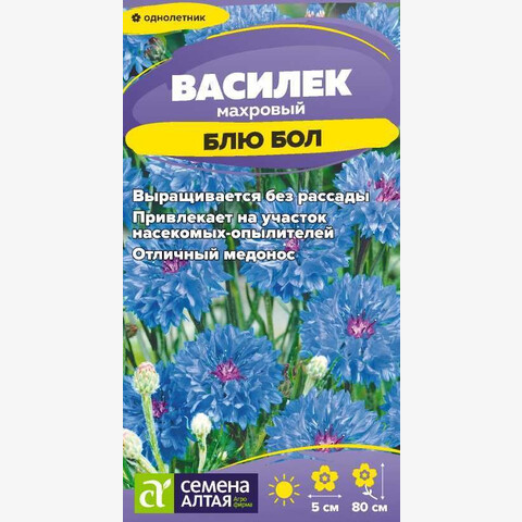 Декоративно-цветущий однолетник, создающий в саду настроение настоящего русского лета. Растение высокорослое, до 80 см, разветвленное, несущее на концах побегов множество васильково-синих махровых соцветий до 5 см в диаметре. Особенность сорта – характерная шаровидная форма соцветий. Василек – отличный медонос, также он обладает ценными лекарственными свойствами: его отвар применяют, чтобы снять усталость с глаз, при фурункулах, цистите и многих других заболеваниях. Прекрасно подойдет для высоких бордюров, цветников в ландшафтном стиле, используется для оформления клумб, в групповых посадках, на каменистых горках, для срезки. Светолюбивое, холодостойкое, засухоустойчивое растение. Неприхотливо, но предпочитает открытые солнечные участки на рыхлых питательных нейтральных почвах. Выращивают посевом семян в открытый грунт в конце апреля – начале мая, как только почва прогреется до +3-5°C. Холодов и кратковременных ночных заморозков растения не боятся. Возможен и подзимний посев в октябре при температуре близкой к нулю. Семена высевают в бороздки глубиной 1,5-2 см, предварительно пролитые водой. Сеют с шагом в 5-7 см, мульчируют слоем почвы 0,3-0,5 см и поливают. Всходы появляются через 7-14 дней. Спустя 2-3 недели всходы прореживают с интервалом 35-40 см между растениями. Уход заключается в рыхлении, прополке и поливе 1 раз в 3-4 дня, однако во влажную погоду поливы сокращают, так как растение не переносит переувлажнения. Цветение обильное и продолжительное, с июня до сентября. Для продления цветения увядшие корзинки удаляют.