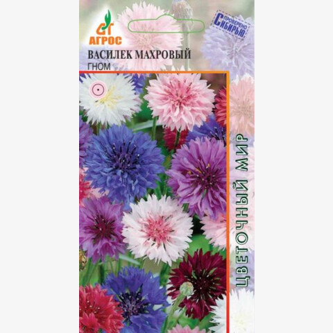 Красивое однолетнее низкорослое растение с прямостоячим, сильно ветвящимся стеблем. Соцветия – корзинки диаметром 5-7 см. Василек холодостоек, светолюбив, очень неприхотлив. Хорошо развивается на небогатых почвах, содержащих известь. Чтобы цветение было продолжительным и обильным, в жаркую, сухую погоду растения необходимо поливать. Семена высевают сразу на постоянное место, с последующим прореживанием, на глубину 0,5-1 см. Всходы появляются через 10-14 дней. Температура оптимальная для всходов - +18°С. Возможен подзимний посев. Васильки прекрасно смотрятся на клумбах, в миксбордерах. Из них можно делать бордюры и рабатки либо высаживать отдельными группами и массивами. Хорошо стоят в срезке, а также являются красильным, лекарственным и медоносным растением. 40 - IV-V,IX-X - 15-20 VI-IX
